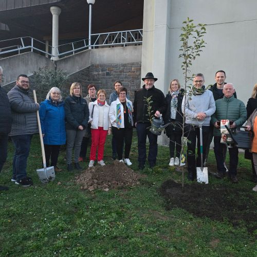 In einer Feierstunde traf man sich, um den geschenkten Baum symbolisch zu übergeben und zu pflanzen.