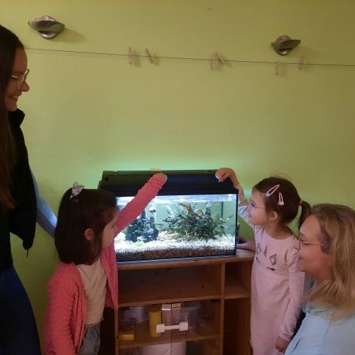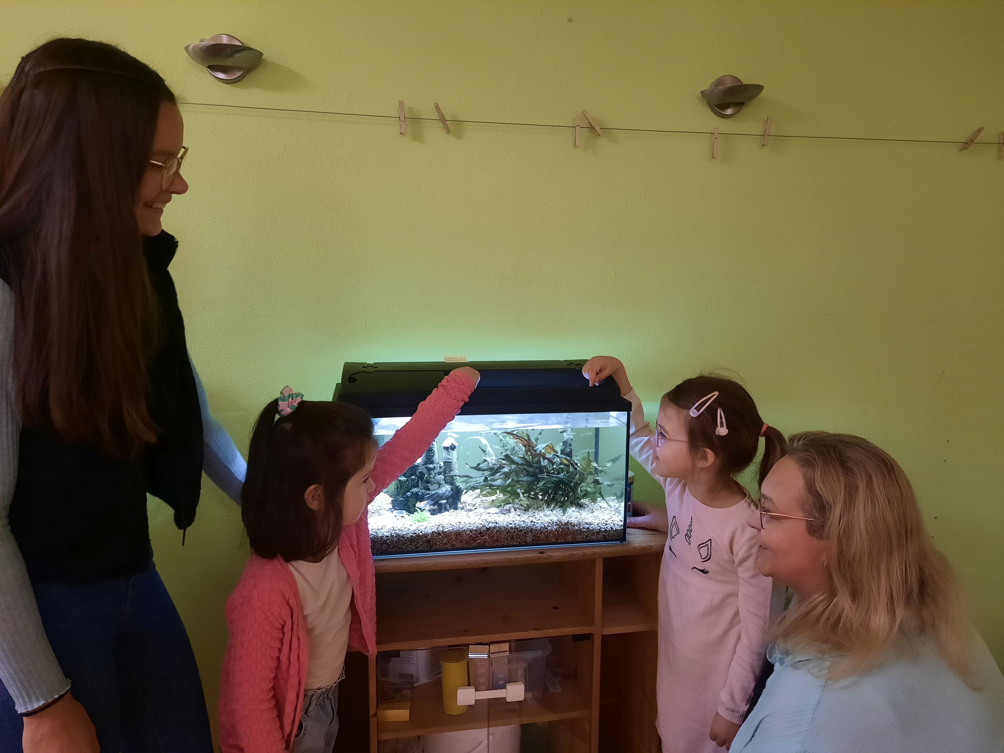 Das pädagogische Personal, sowie das Leitungsteam empfinden dies als eine große Bereicherung für den Alltag, da ein Aquarium vielfältige Sinnesanregungen und Lernmöglichkeiten bietet. Die Kinder lernen, für die Pflege und das Wohlbefinden der Tiere verantwortlich zu sein mit der Unterstützung einer Fachkraft.