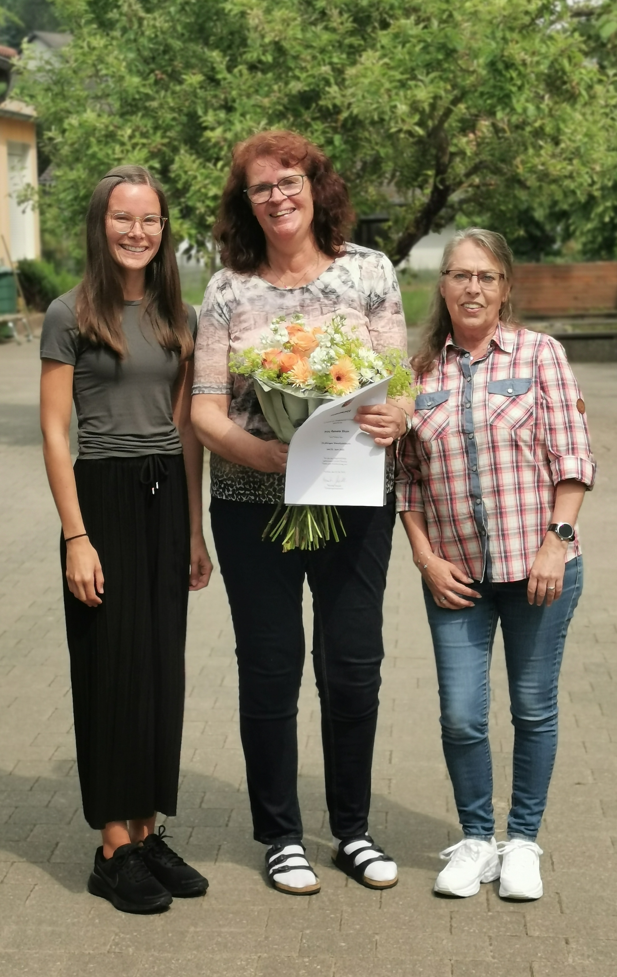 Frau Renate Blum zum 25 jährigen Dienstjubiläum und überreichten einen Blumenstrauss und eine Urkunde.