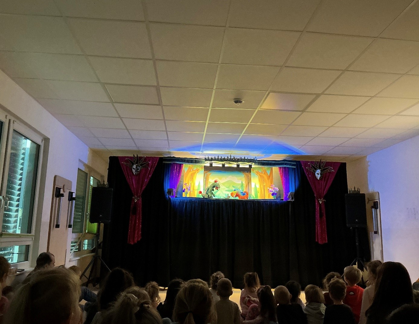 Für besondere Stimmung und Anspannung für sorgten exzellente Licht und Musikeffekte. Alle Kita-Kids waren sehr aufgeregt und gespannt auf die Puppen und die Geschichte:
