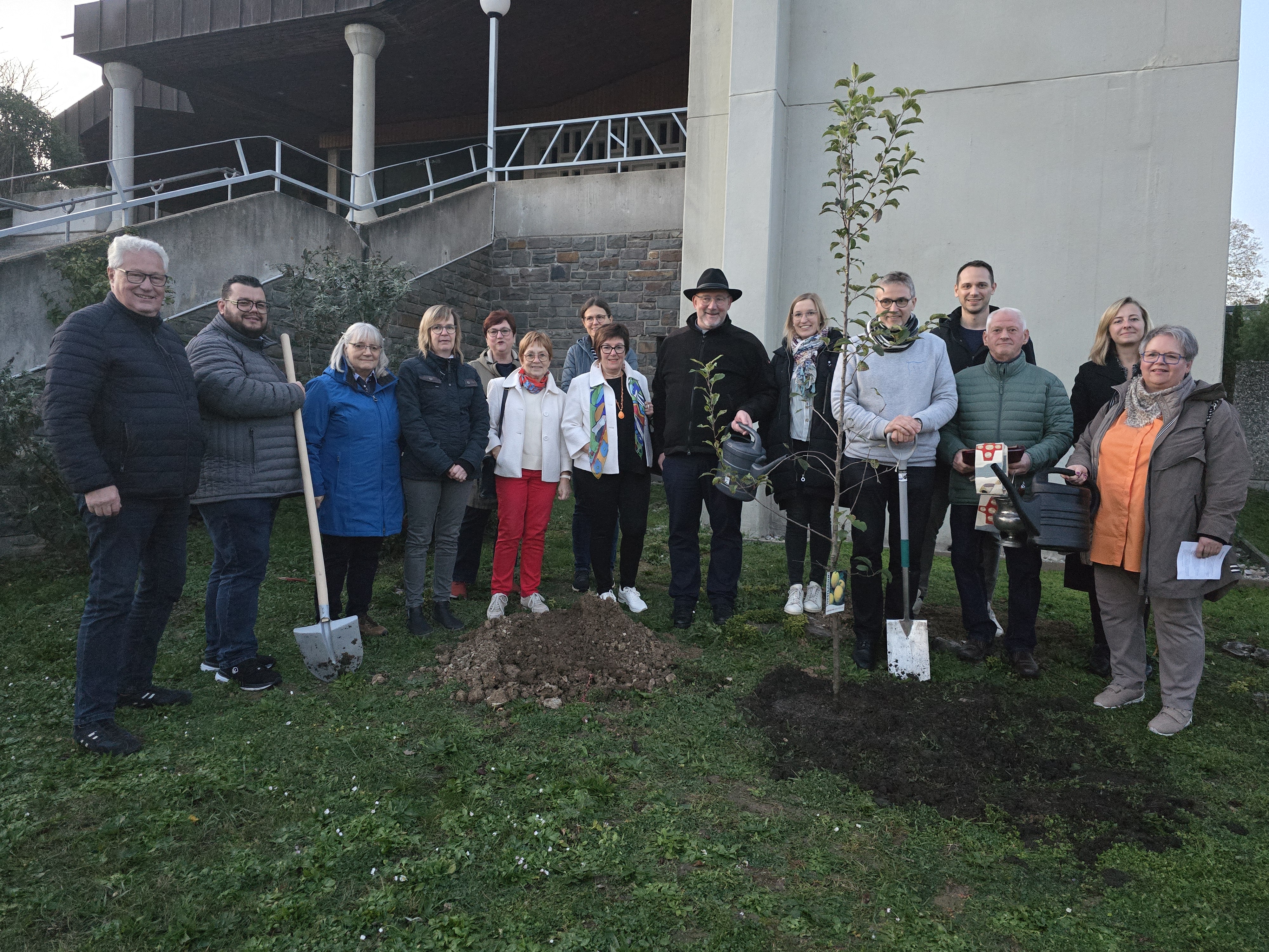In einer Feierstunde traf man sich, um den geschenkten Baum symbolisch zu übergeben und zu pflanzen.