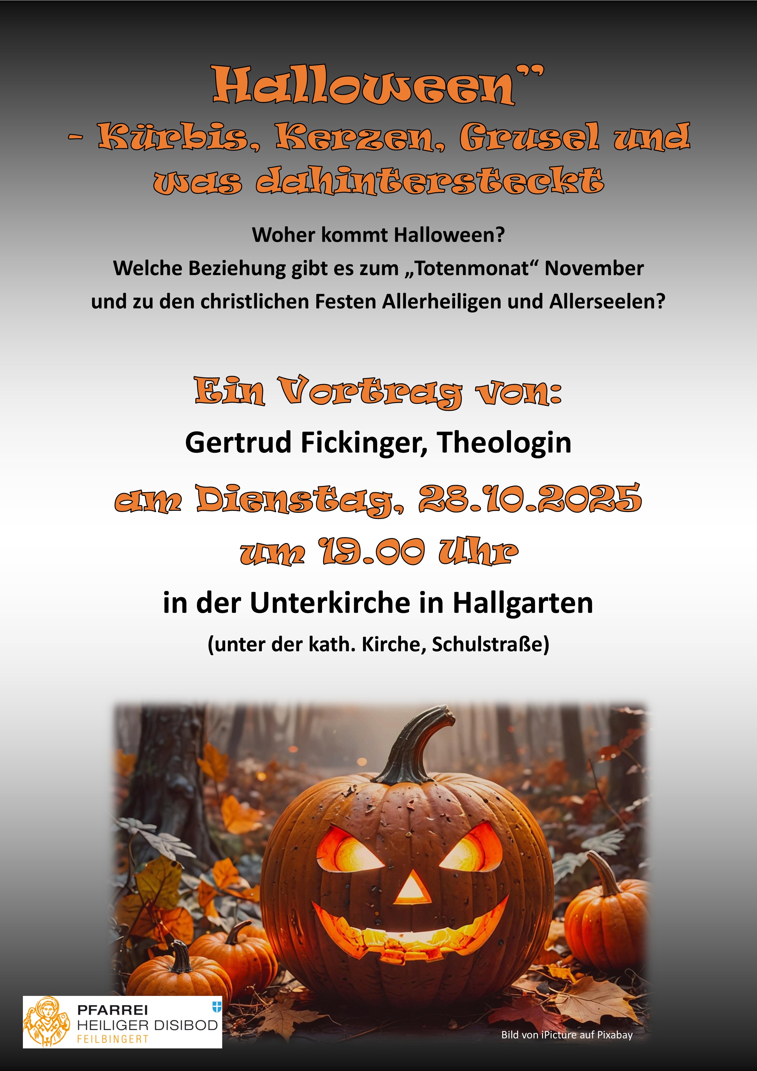 Freitag, 28.10.2025 um 19:00 Uhr: "Woher kommt Halloween?" - Vortrag von Gertrud Fickinger in der Unterkirche in Hallgarten