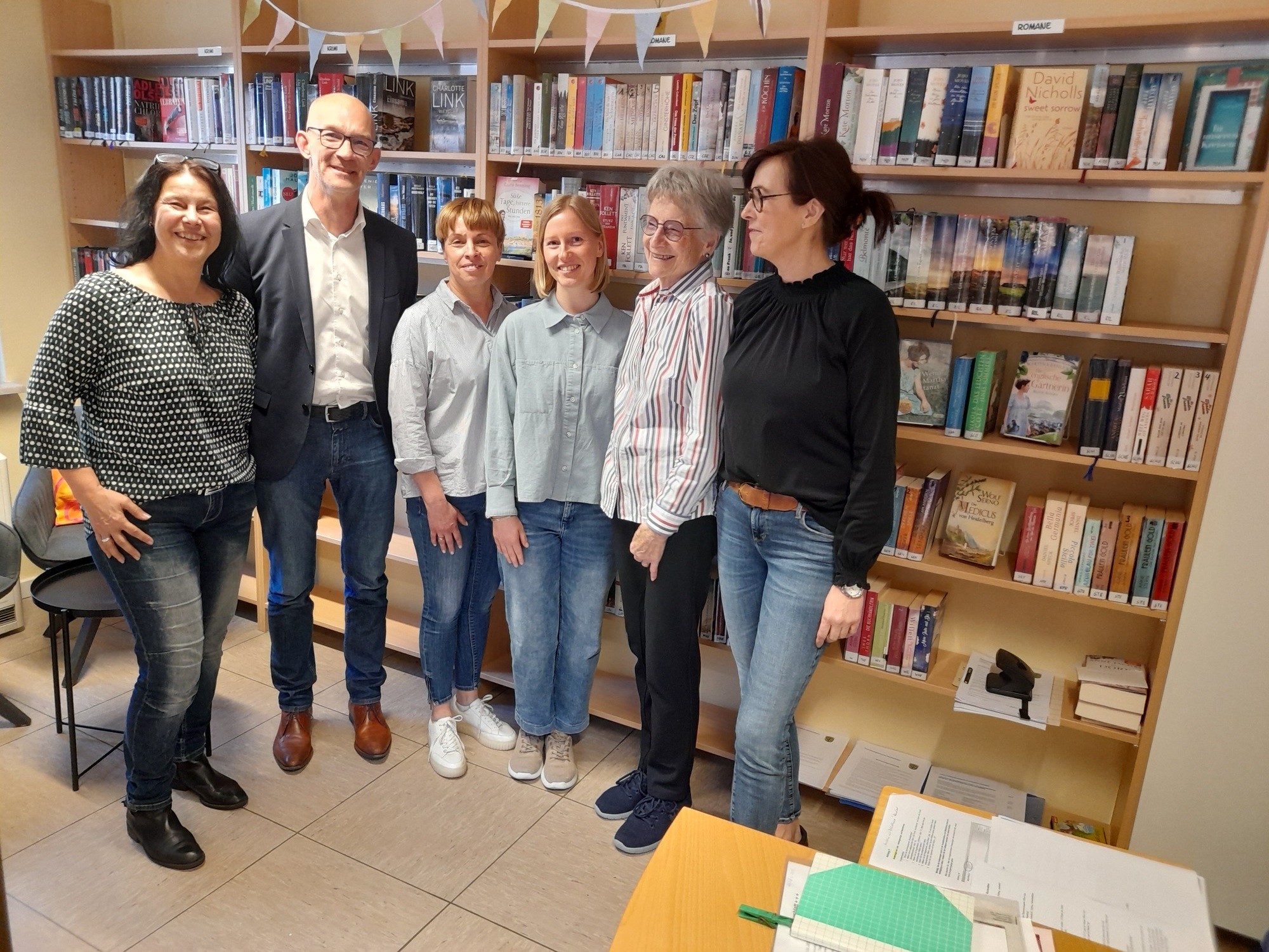 Stephanie Leonhard, Ortsbürgermeisterin und das Team der Bücherei