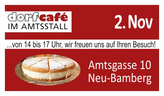 Am 06. Dezember 2015 eröffnete das Dorfcafé um ersten Mal seine Pforten. Seitdem laden wir Sie recht herzlich - an jedem ersten Sonntag im Monat - von 14.00 Uhr - 17.00 Uhr zu Kaffee und selbstgebackenen Kuchen und Torten ein.