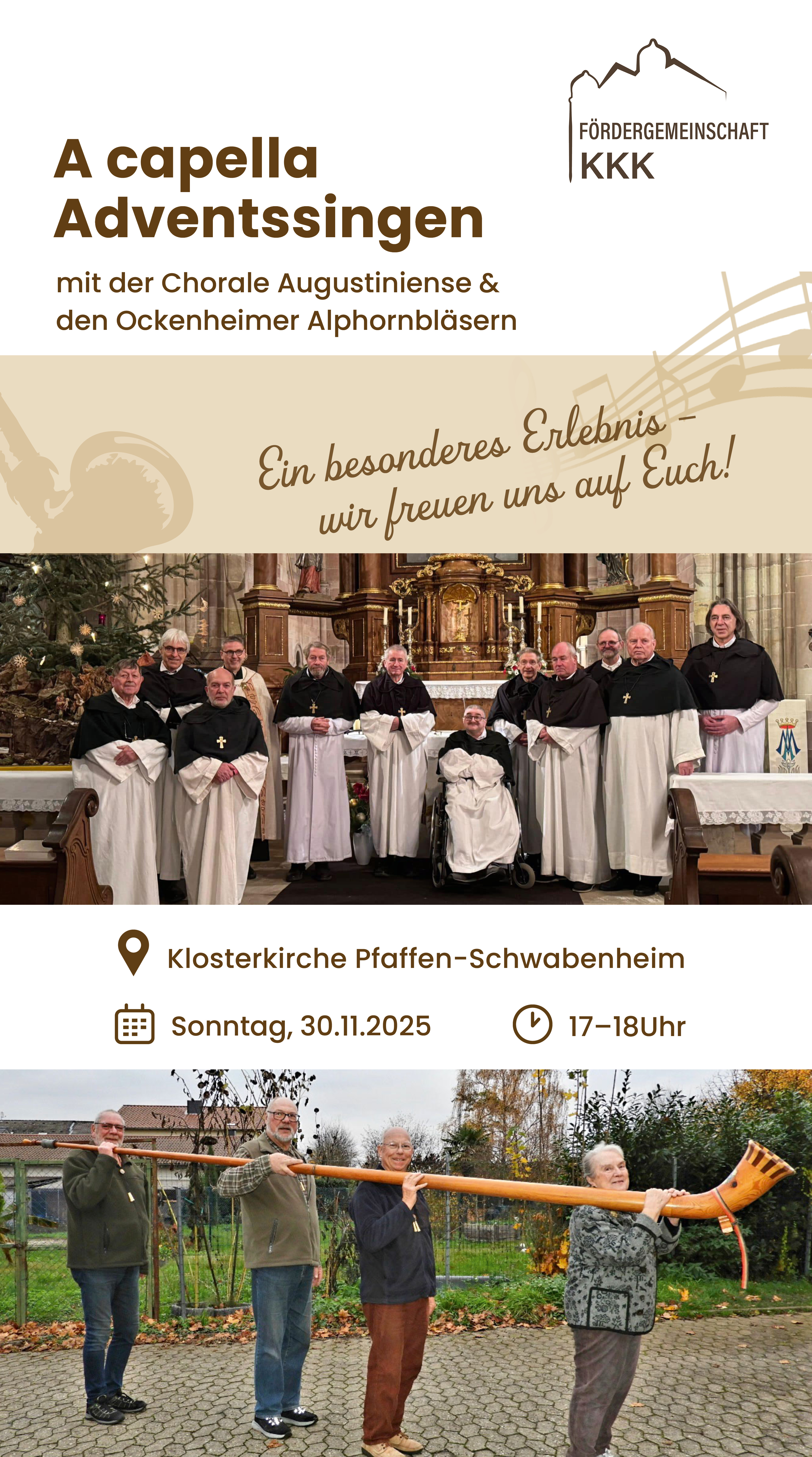 Sonntag, 30.11.2025 von 17:00 Uhr - 18:00 Uhr: A Capella Adventssingen der Fördergemeinschaft KKK in der Klosterkirche Pfaffen-Schwabenheim