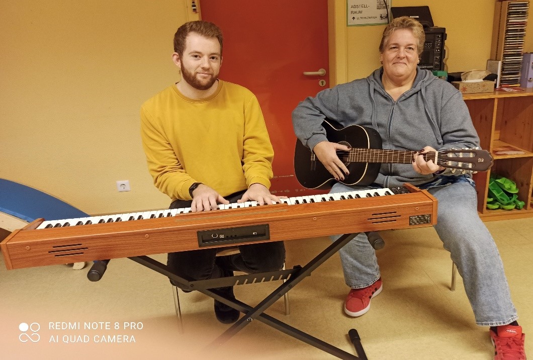 Max Höwelberend, pädagogische Fachkraft in der Kita Fürfeld, bringt neue, unbekannte Klänge ins Haus, denn er spielt Klavier.