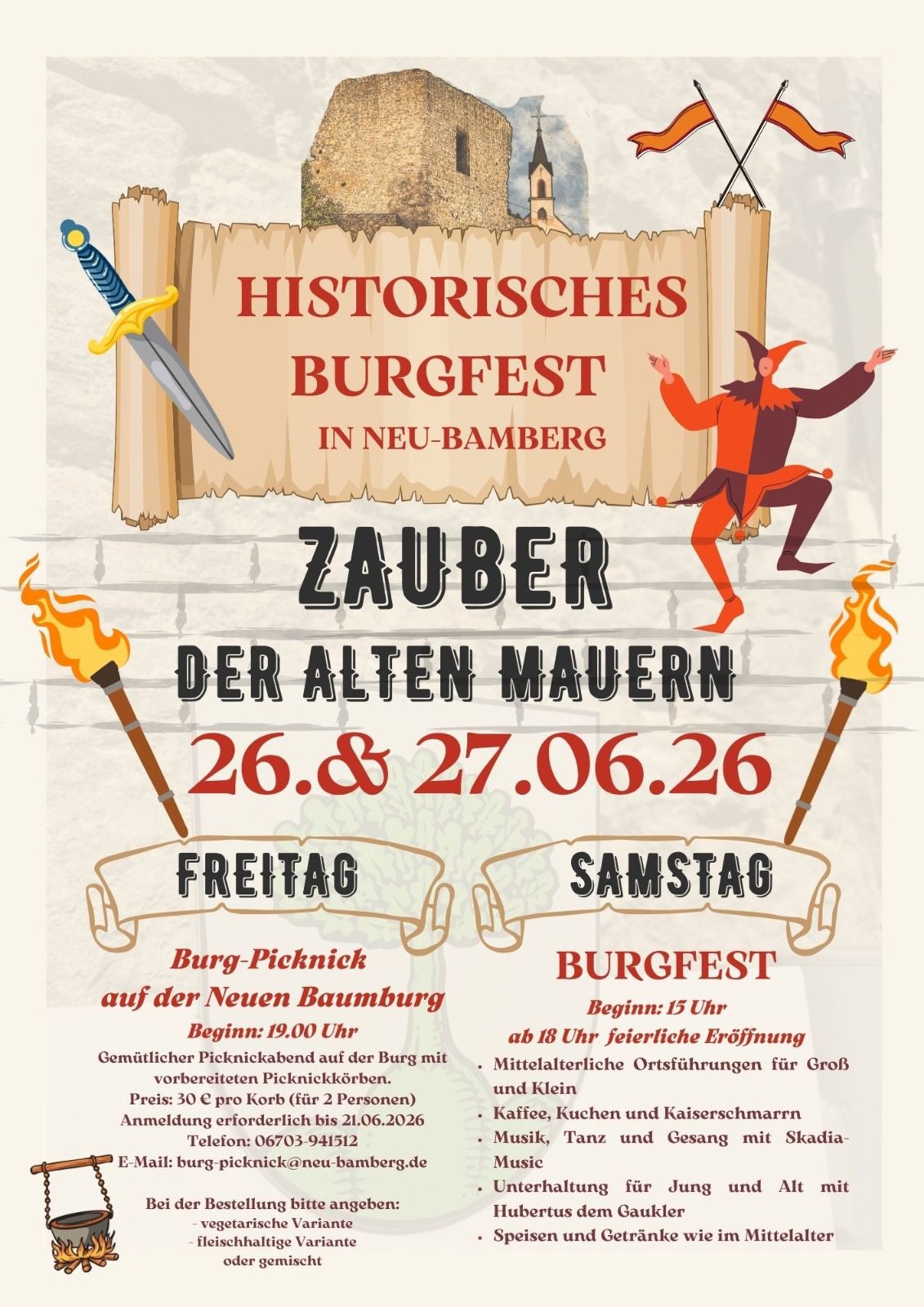 Samstag 27.06.2026 ab 15:00 Uhr: Burgfest auf der Neuen-Baumburg Neu-Bamberg
